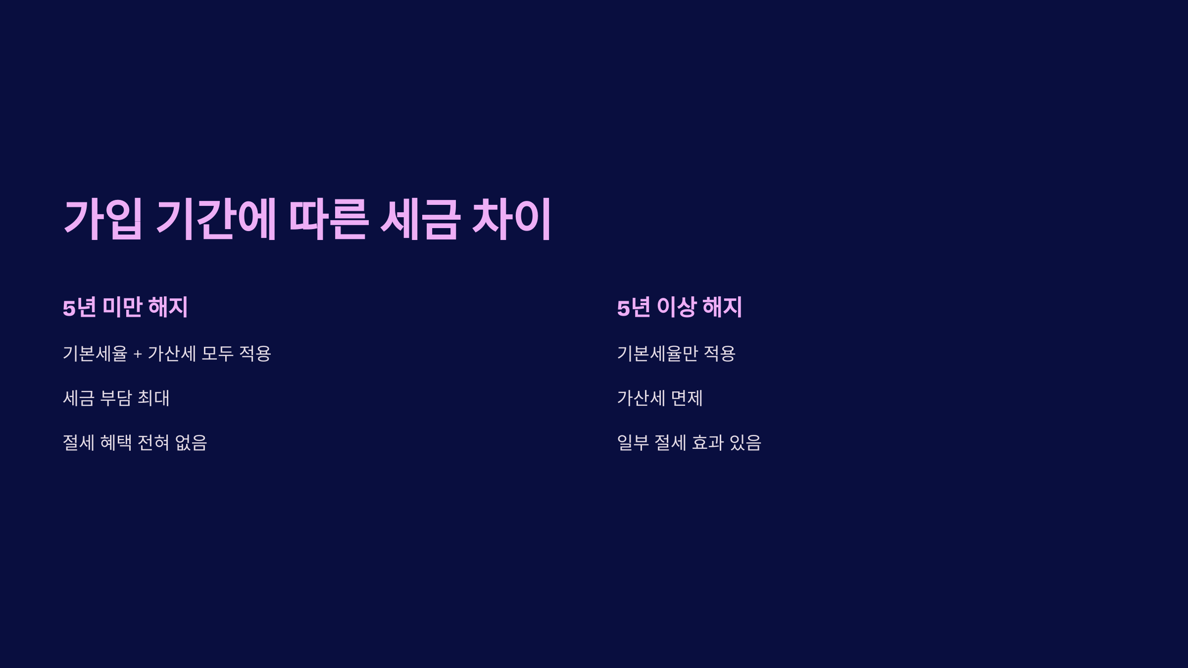 중요한 포인트! 가입 기간이 5년 이상이라면 조금은 덜 억울할 수 있어요. 납입기간이 길고, 55세 이후 조건을 만족해 연금 수령 방식으로 전환한다면 세금 부담 없이 인출도 가능해요.