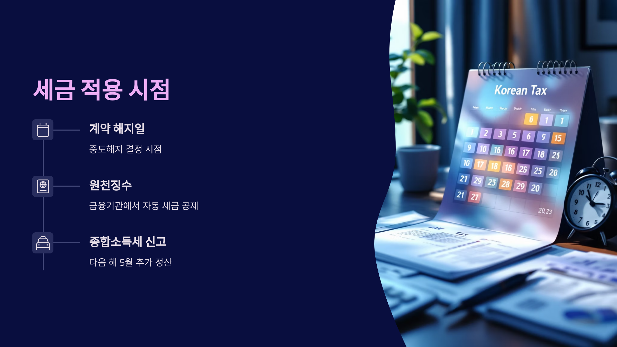 예를 들어, 500만 원을 적립했다면 82만 5천 원의 세금을 바로 떼고 나머지만 수령할 수 있다는 거예요. 이걸 모르고 해지하면 손해가 엄청 커요. 😨