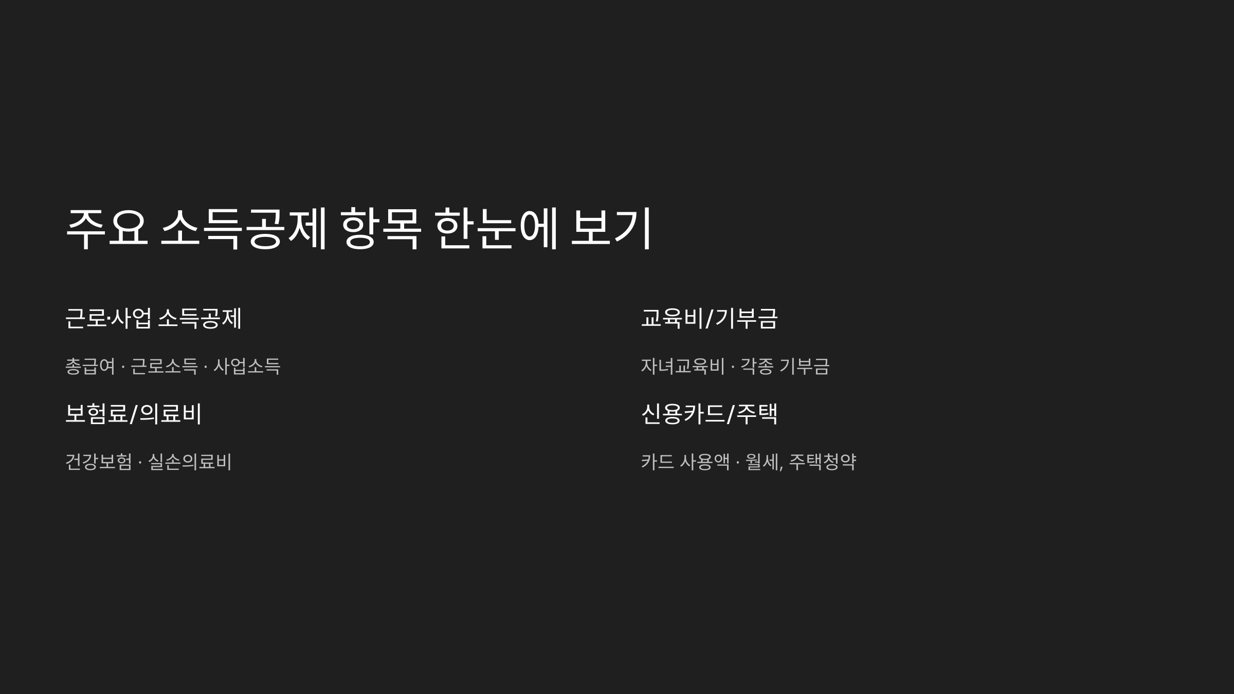 📂 주요 소득공제 항목 정리