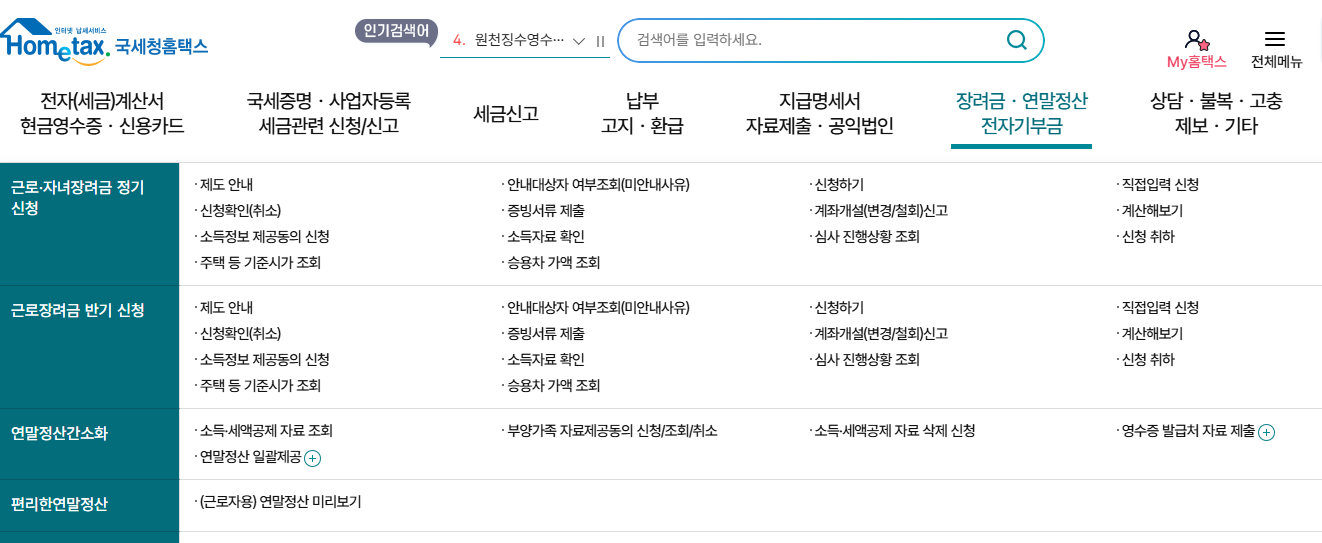 정확한 계산은 연말정산 간소화 서비스를 활용하세요.