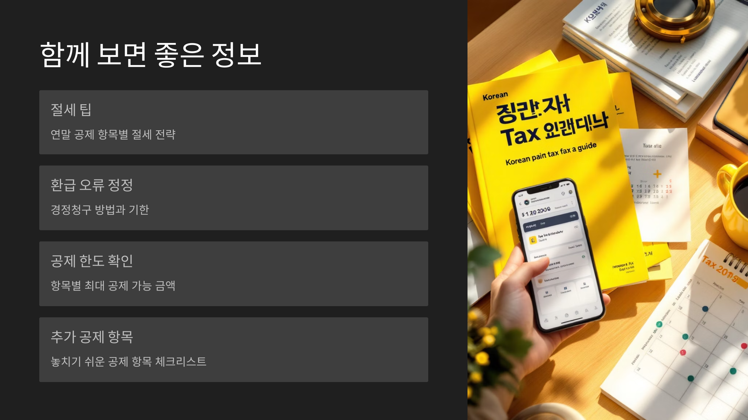 내가 생각했을 때, 연말정산은 일찍 준비할수록 더 많은 혜택을 챙길 수 있는 재테크 기회 같아요. 단순한 세금 정산이 아니라 돈을 지키는 방법이니까요 💸
