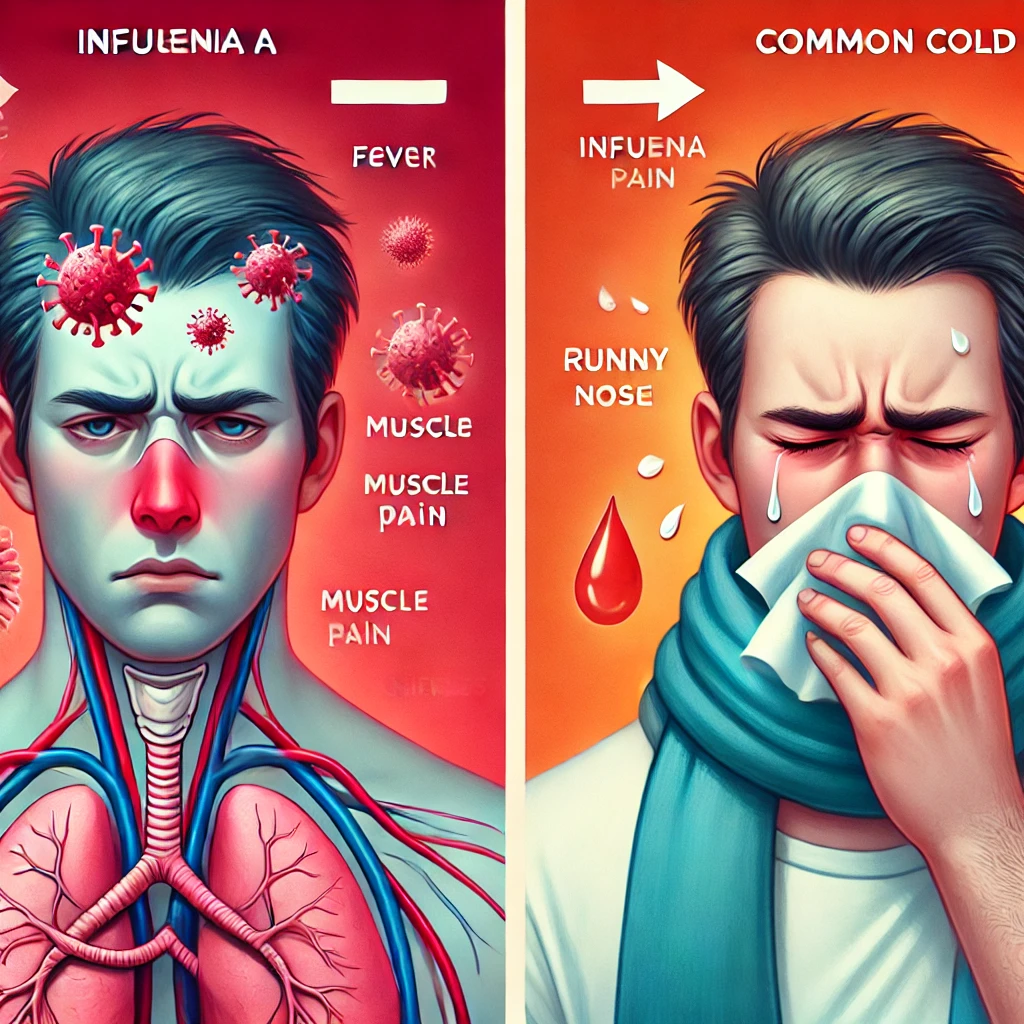 A형 독감과 일반 감기는 모두 호흡기 감염 질환이지만, 몇 가지 중요한 차이가 있어요: