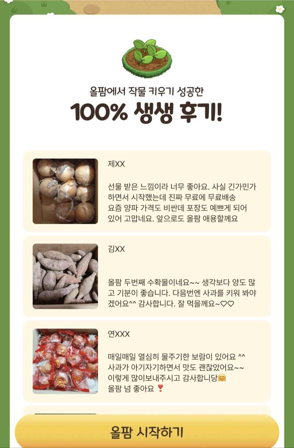 ✔ 올팜 작물 활용 쇼핑 – 수확한 작물로 쇼핑 혜택 가능!
