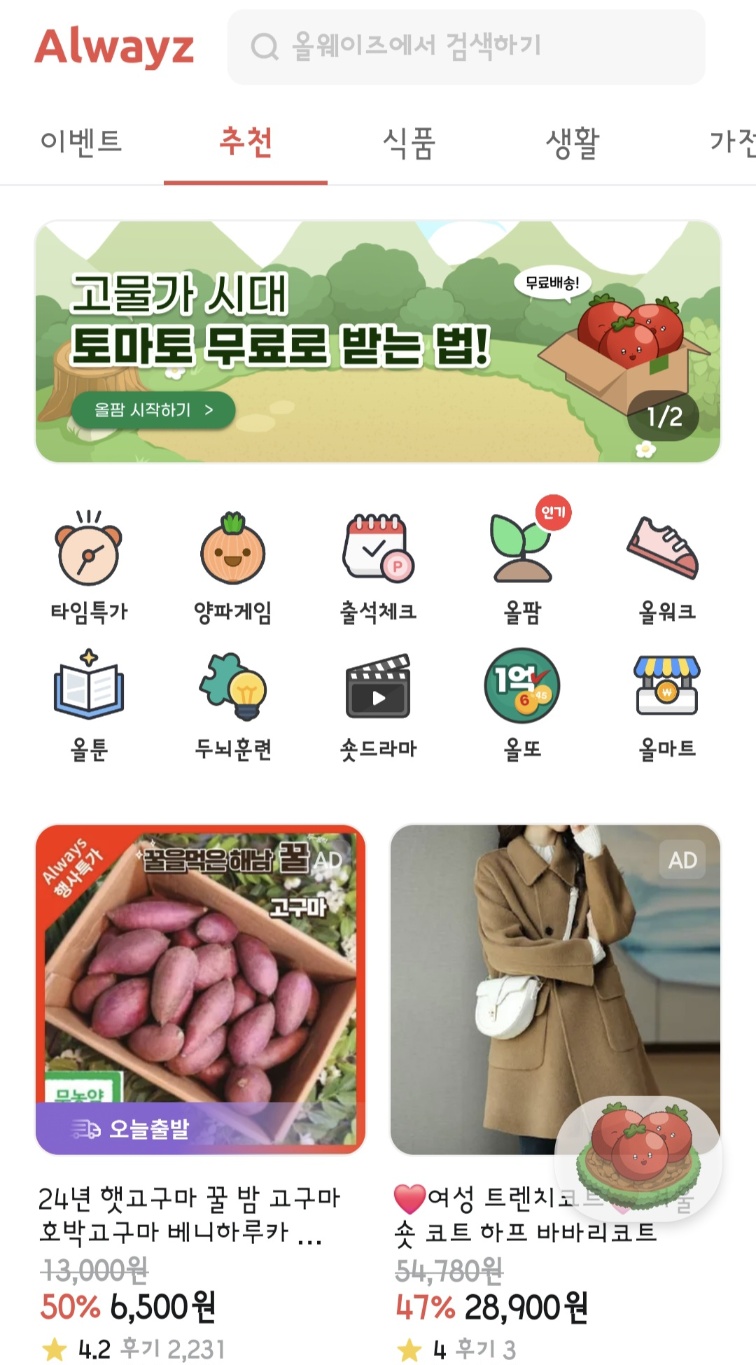 올팜은 단순한 게임이 아니라, 올웨이즈 플랫폼과 연계되어 다양한 혜택을 받을 수 있어요. 쇼핑과 게임을 동시에 즐길 수 있답니다! 🛒