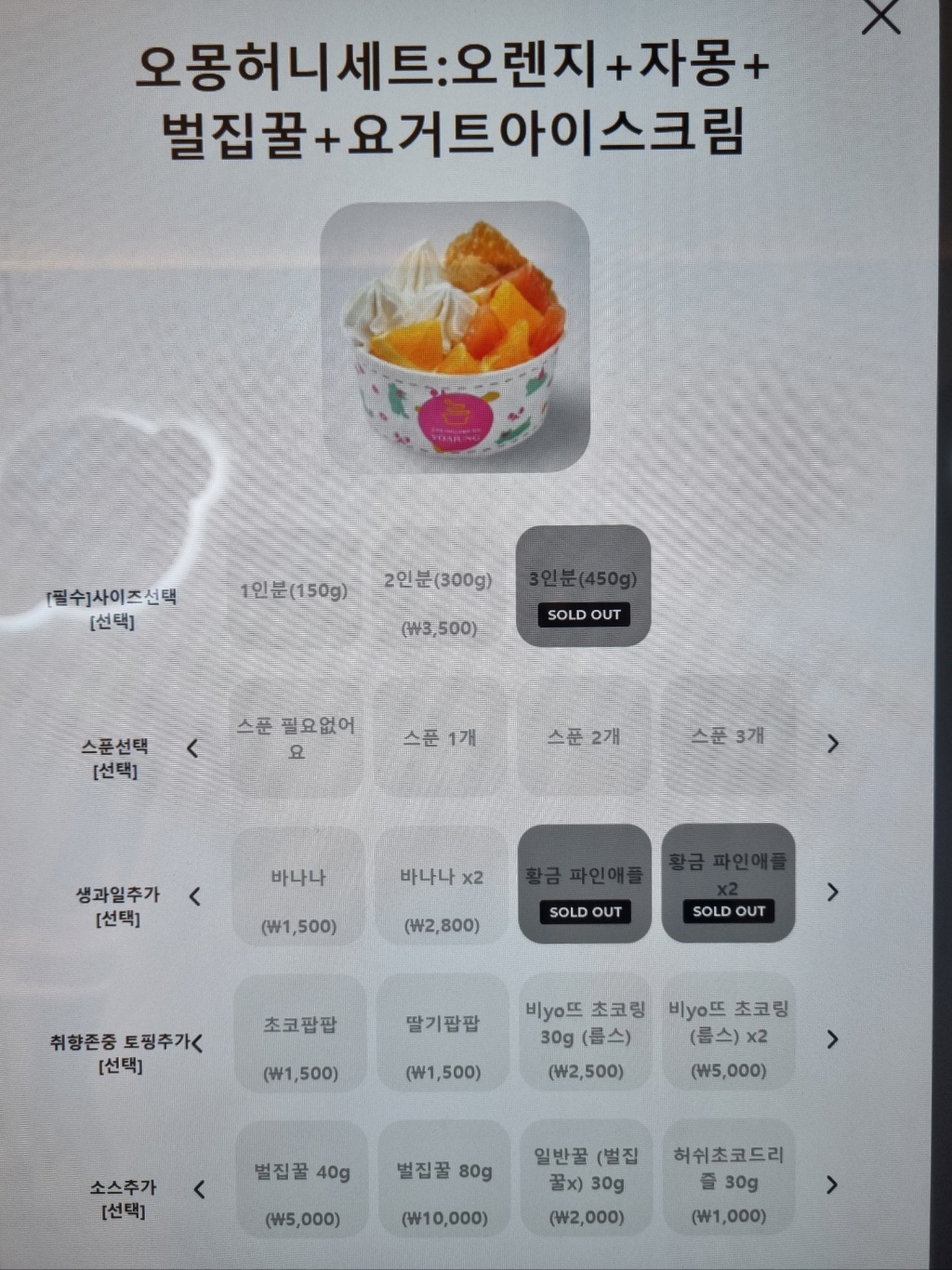 요아정의 인기 메뉴