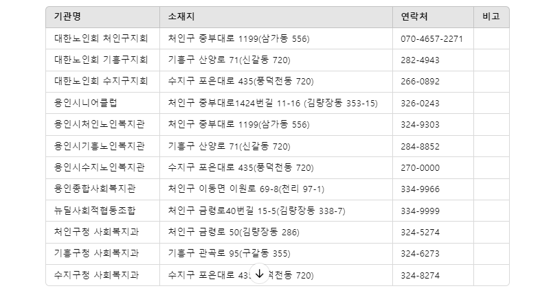 - 주소: 경기도 용인시 수지구 포은대로 435, 수지복지센터 2층 수지노인복지관.