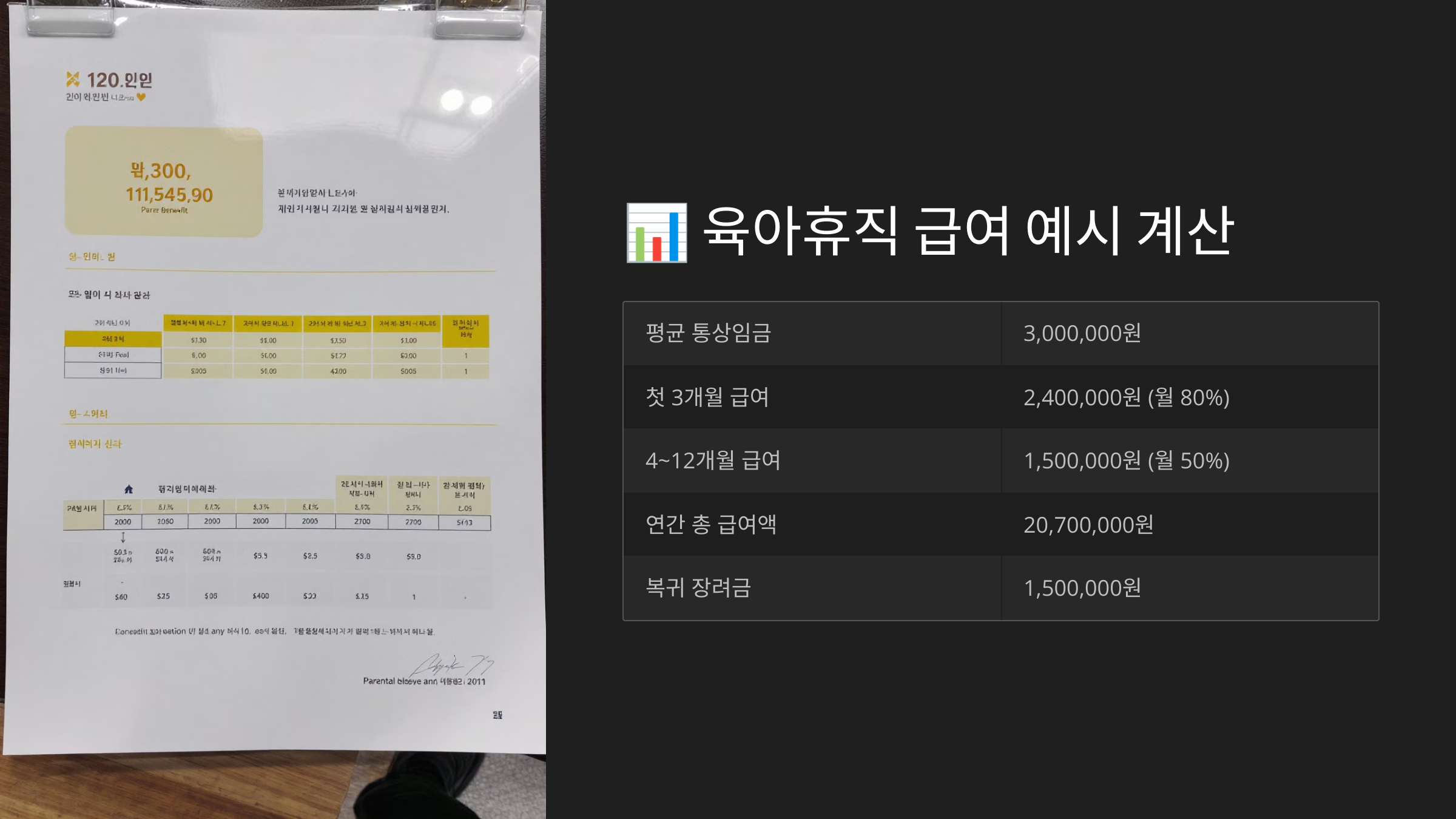 💰 육아휴직 급여 계산 예시