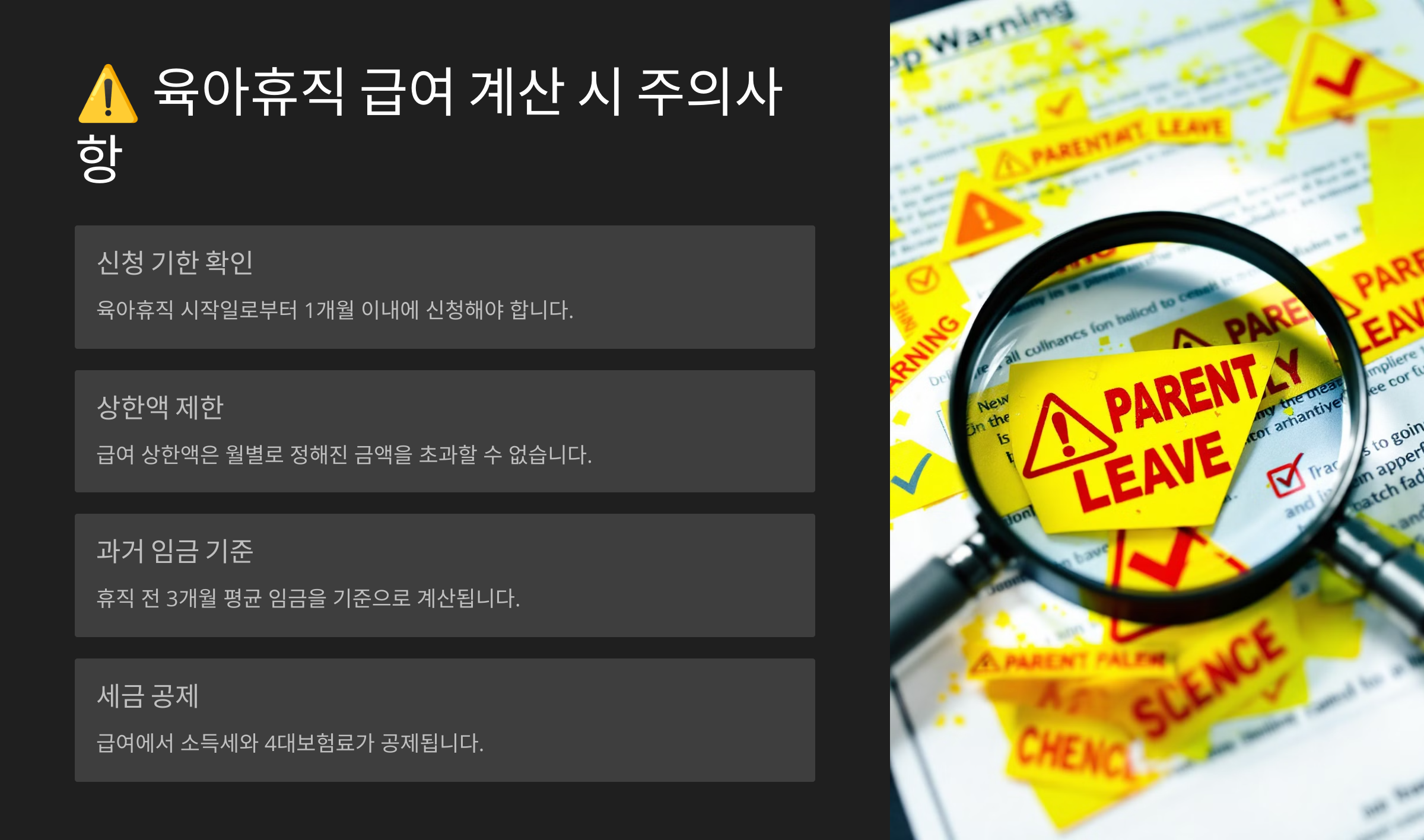 ⚠️ 육아휴직 급여 계산 시 주의사항