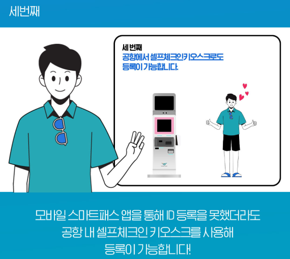 A1. 스마트패스 등록은 스마트패스 모바일 앱 또는 인천공항의 셀프체크인 키오스크에서 가능합니다.