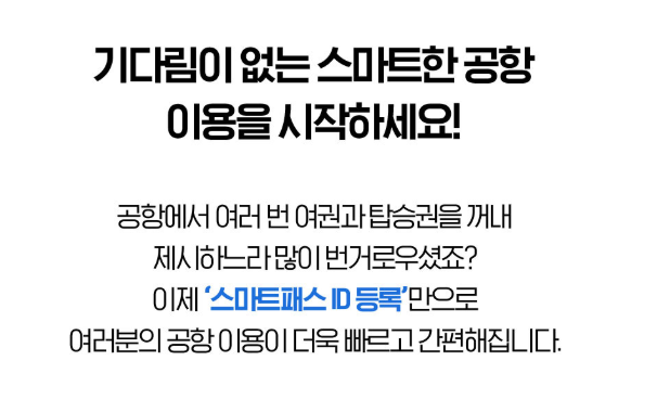 스마트패스는 여권, 안면정보, 탑승권을 사전에 등록해 출국장과 탑승게이트를 얼굴 인증만으로 빠르게 통과할 수 있는 서비스예요. 이 서비스를 통해 번거로운 서류 확인 절차를 간소화하고, 공항 내 이동 속도를 크게 향상시킬 수 있어요.