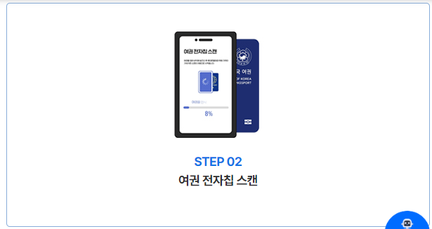 2. 여권 전자칩 스캔: 여권 내 전자칩을 스캔해 등록을 완료합니다.
