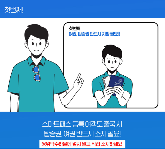 스마트패스를 이용하려면 먼저 등록이 완료되어 있어야 해요. 등록 후에는 공항에서 다음 단계를 거쳐 이용할 수 있습니다.