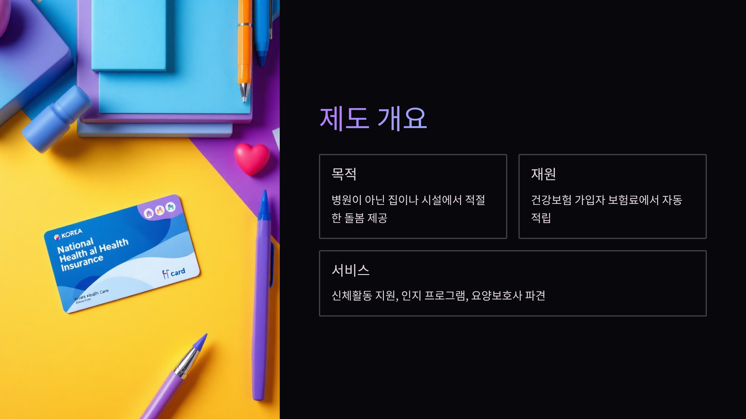 | 주요 서비스 | 방문요양, 방문간호, 주야간 보호 등 |