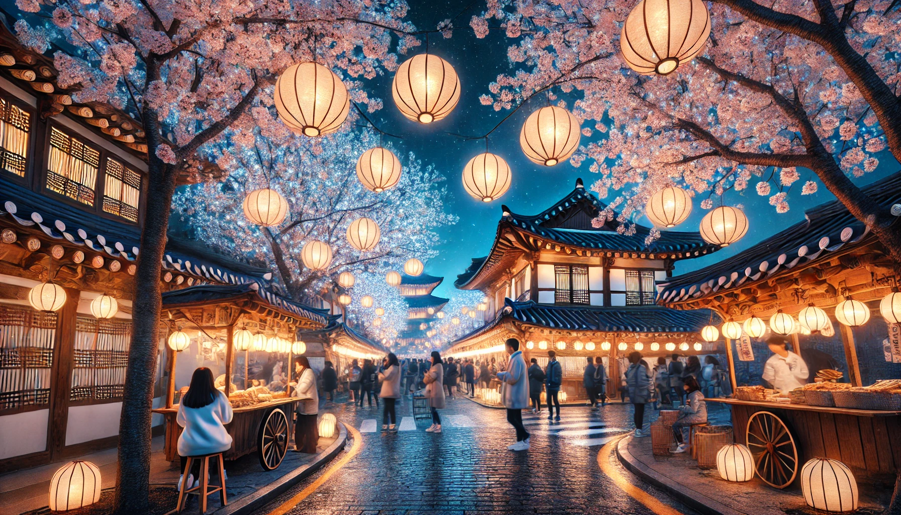 한옥마을 주변에도 벚꽃길이 예쁘게 조성돼 있어서, 저녁 식사 후 산책하면서 야경을 즐기기 좋아요. 조명이 은은하게 비춰지는 한옥 건물과 벚꽃이 만들어내는 그 조화는 진짜 잊지 못할 장면이 될 거예요.