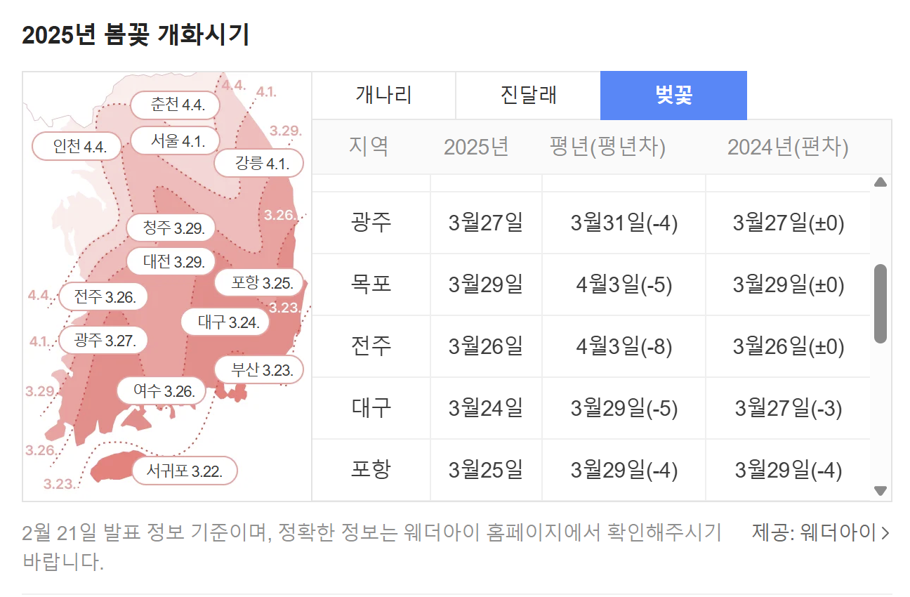 2025년 지역별 벚꽃 축제 개화 시기 및 명소