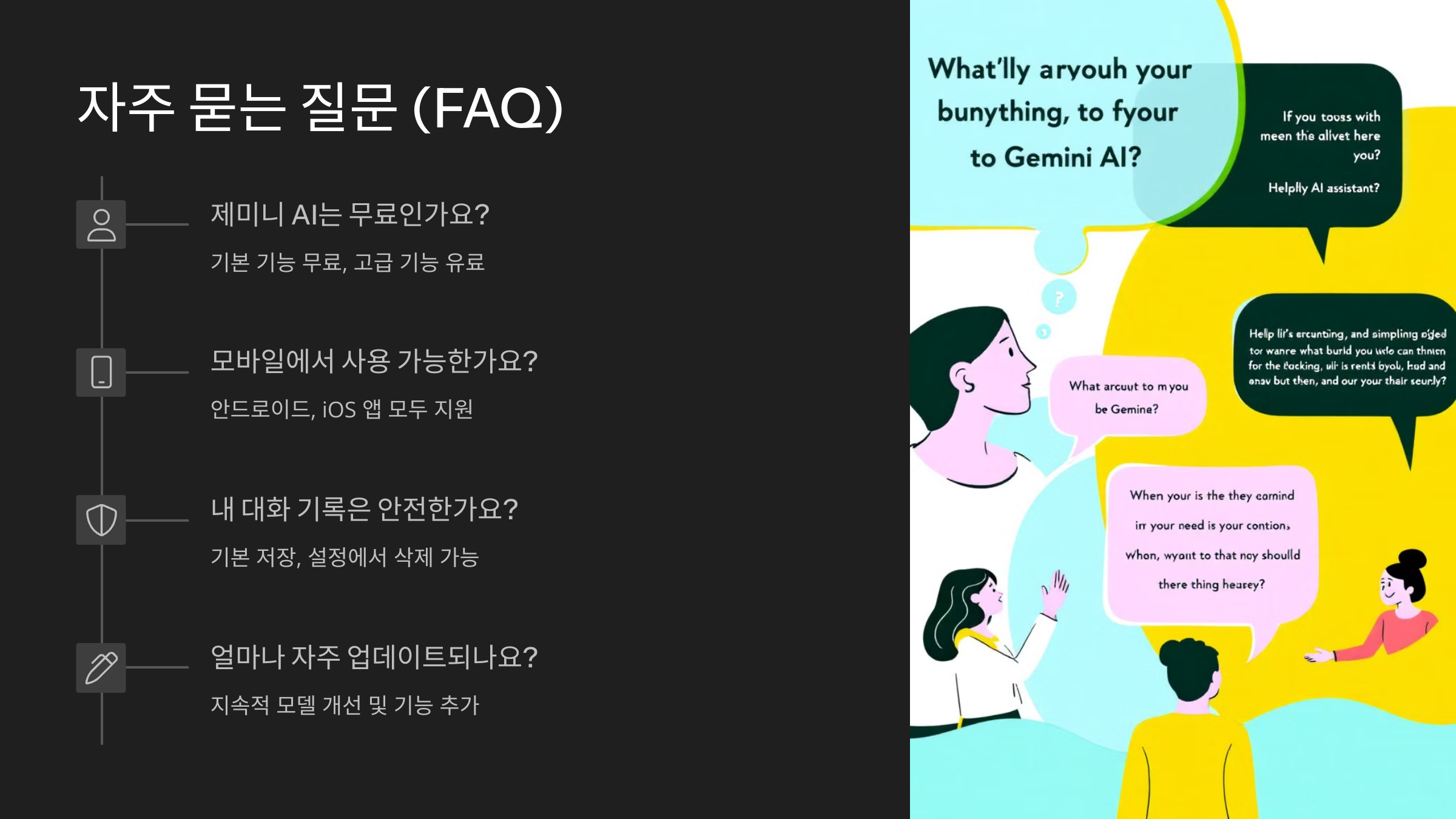 제미니 AI도 완벽하지는 않아요. 모든 AI가 그렇듯, 정보가 틀릴 수도 있고, 최신 뉴스나 특정 지역 정보를 반영하지 못할 수도 있어요. 특히 아직까지는 일부 한국어 표현에 있어서 미묘한 감정이나 문맥을 완벽히 이해하지 못하는 경우도 있어요.