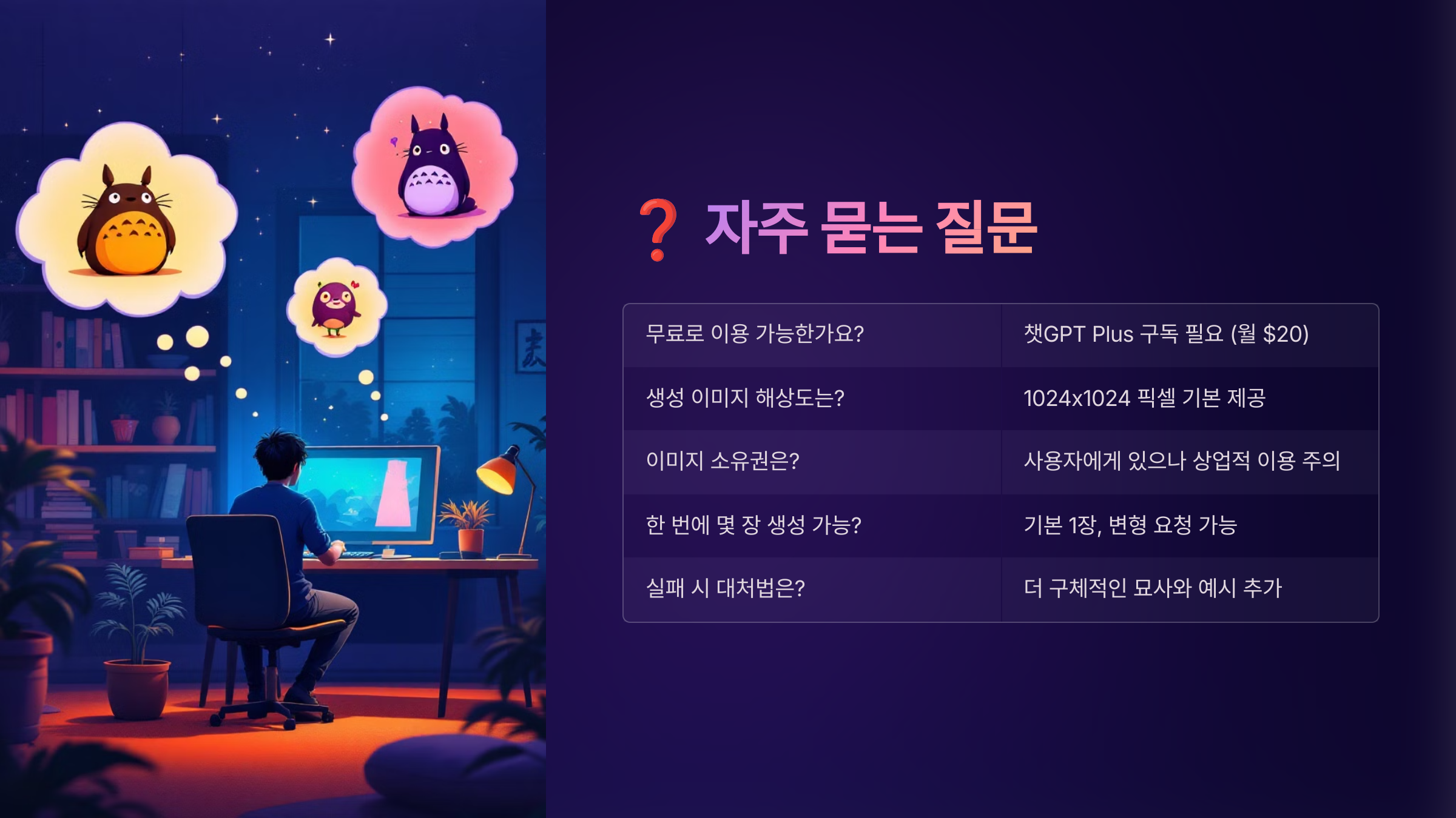 이웃집 토토로, 센과 치히로, 하울의 움직이는 성… 그 따뜻하고 몽환적인 세계를 이제는 챗GPT와 DALL·E 조합으로 누구나 그려낼 수 있답니다. 🎨