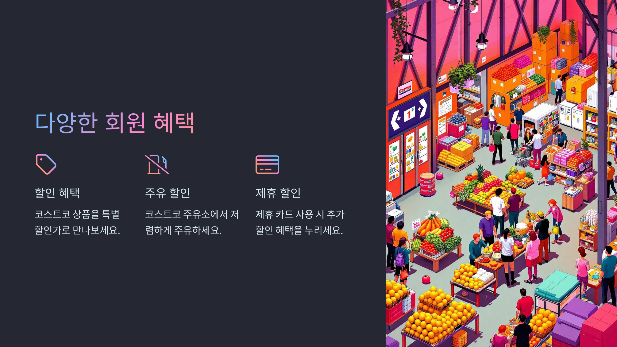 코스트코는 일반 할인 마트와 달리 회원 전용 혜택을 다양하게 제공해요. 가입 비용이 아깝지 않을 만큼 장점이 많답니다! 💡