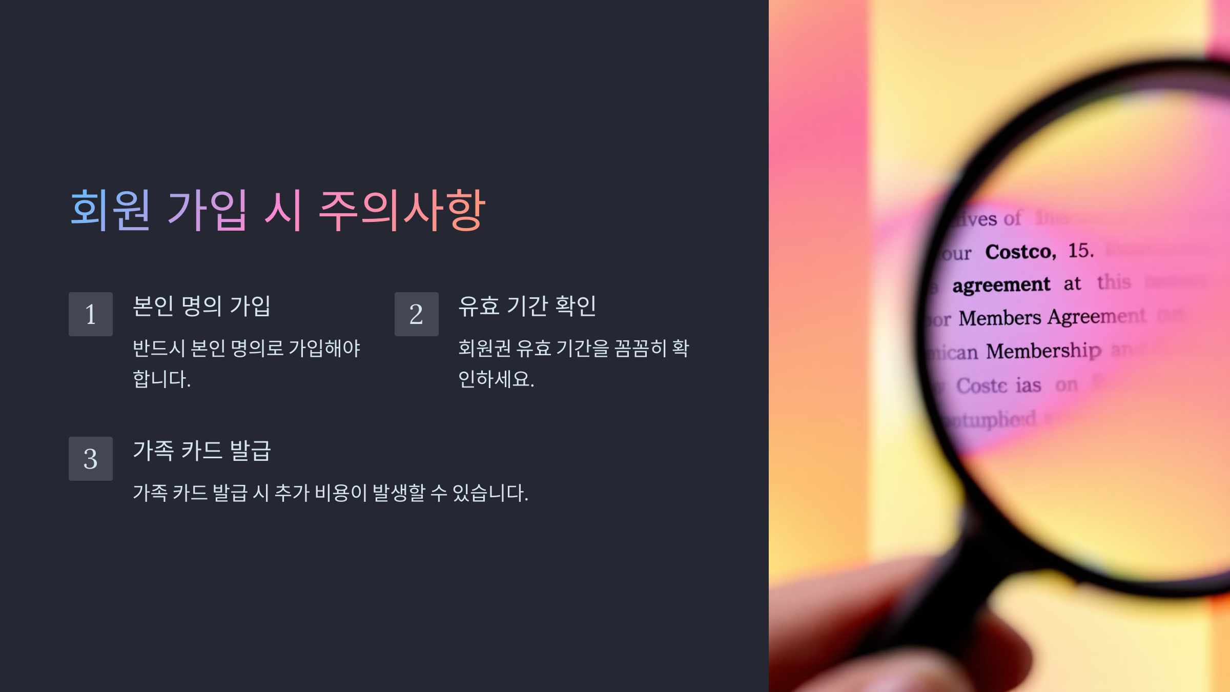 한국에서도 많은 사람들이 코스트코를 이용하고 있으며, 다양한 상품을 저렴한 가격에 구매할 수 있는 장점이 있답니다. 하지만 코스트코를 이용하려면 반드시 회원으로 가입해야 하는데요. 🤔