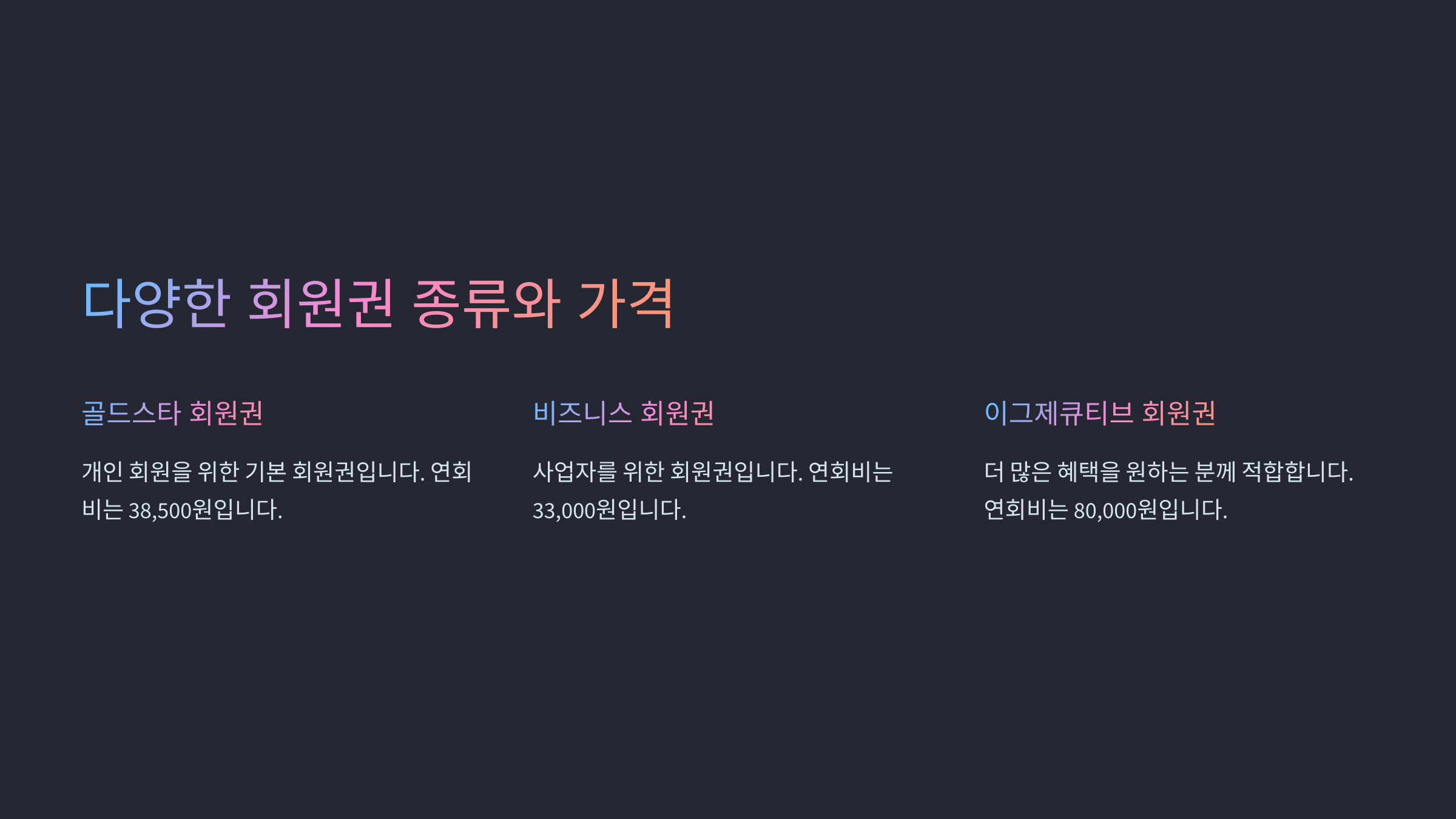 | 회원권 종류 | 대상 | 연회비 | 추가 카드 | 주요 혜택 |