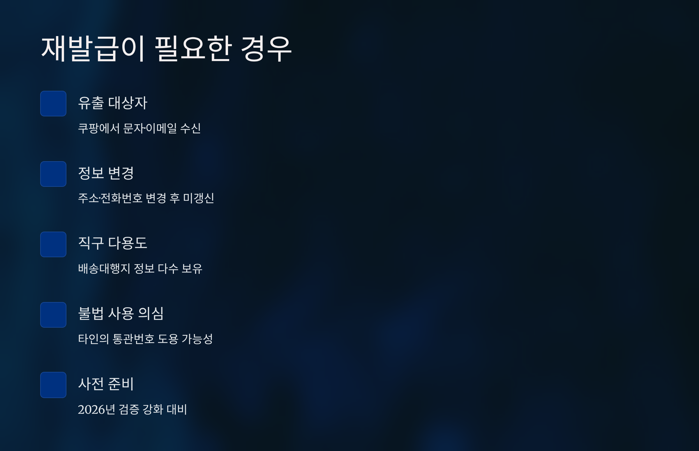 이 글은 관세청, 쿠팡, 언론 보도, 실제 사용자 사례를 종합해 작성된 정보 콘텐츠입니다. 공식적인 법률 자문이나 보상 안내가 아니며, 재발급 여부는 개인의 판단과 책임하에 진행해 주세요.