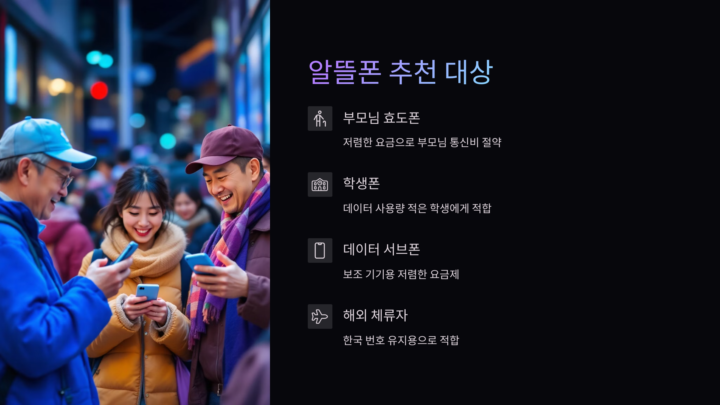 ✔ 누구에게 좋을까요? - 부모님 효도폰 - 아이들·학생폰 - 데이터 서브폰 - 해외 장기 체류 중 한국 번호 유지용 실속파라면 한 번쯤 꼭 고려해 볼 만해요!