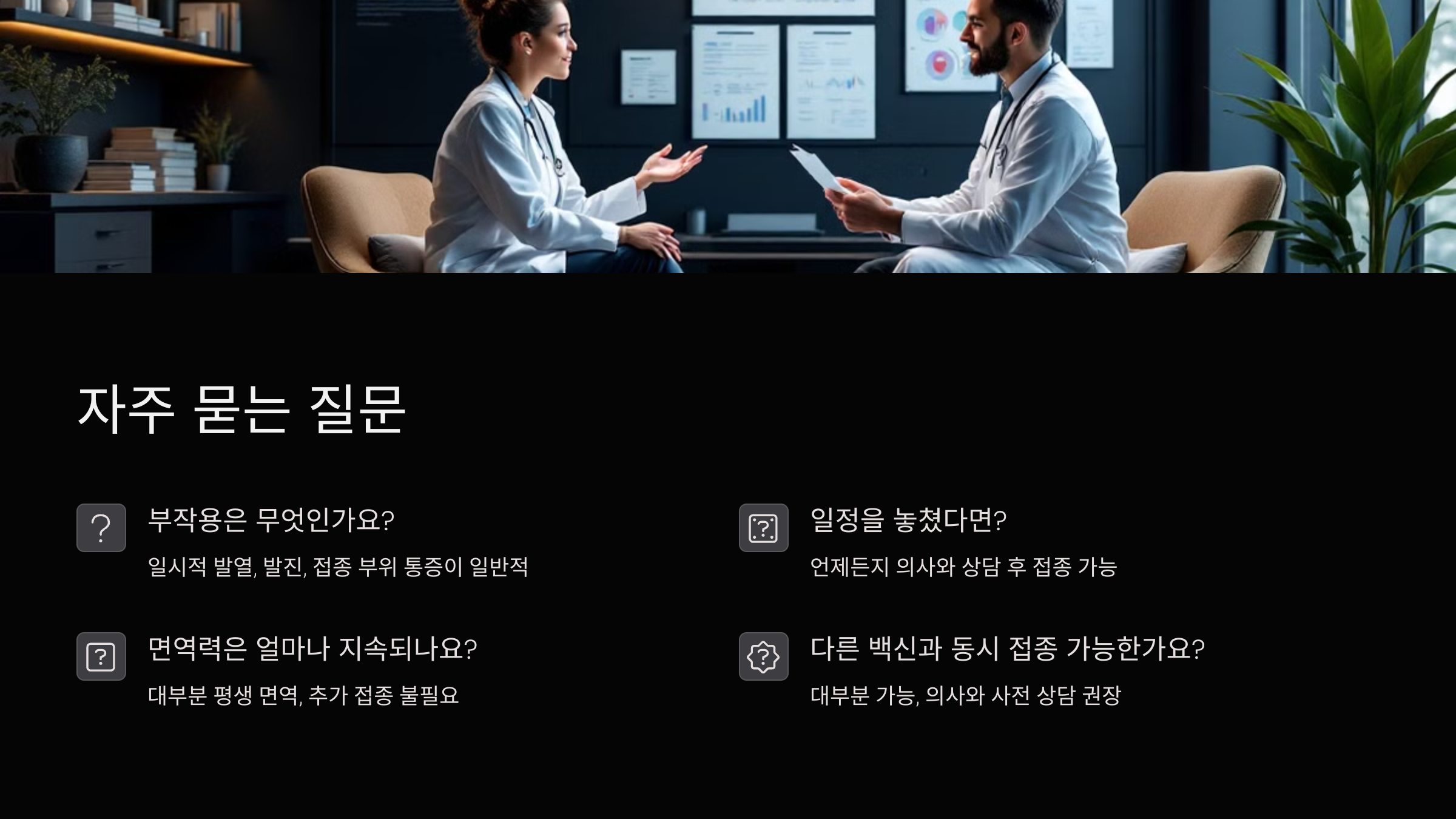백신은 우리 몸을 위한 준비 운동 같은 거예요. 충분히 안전하지만, 컨디션 체크와 이상반응 관찰은 꼭 챙겨야 해요. 안심하고 맞을 수 있도록 병원과 충분히 소통하면서 진행하면 걱정 없어요! 💪