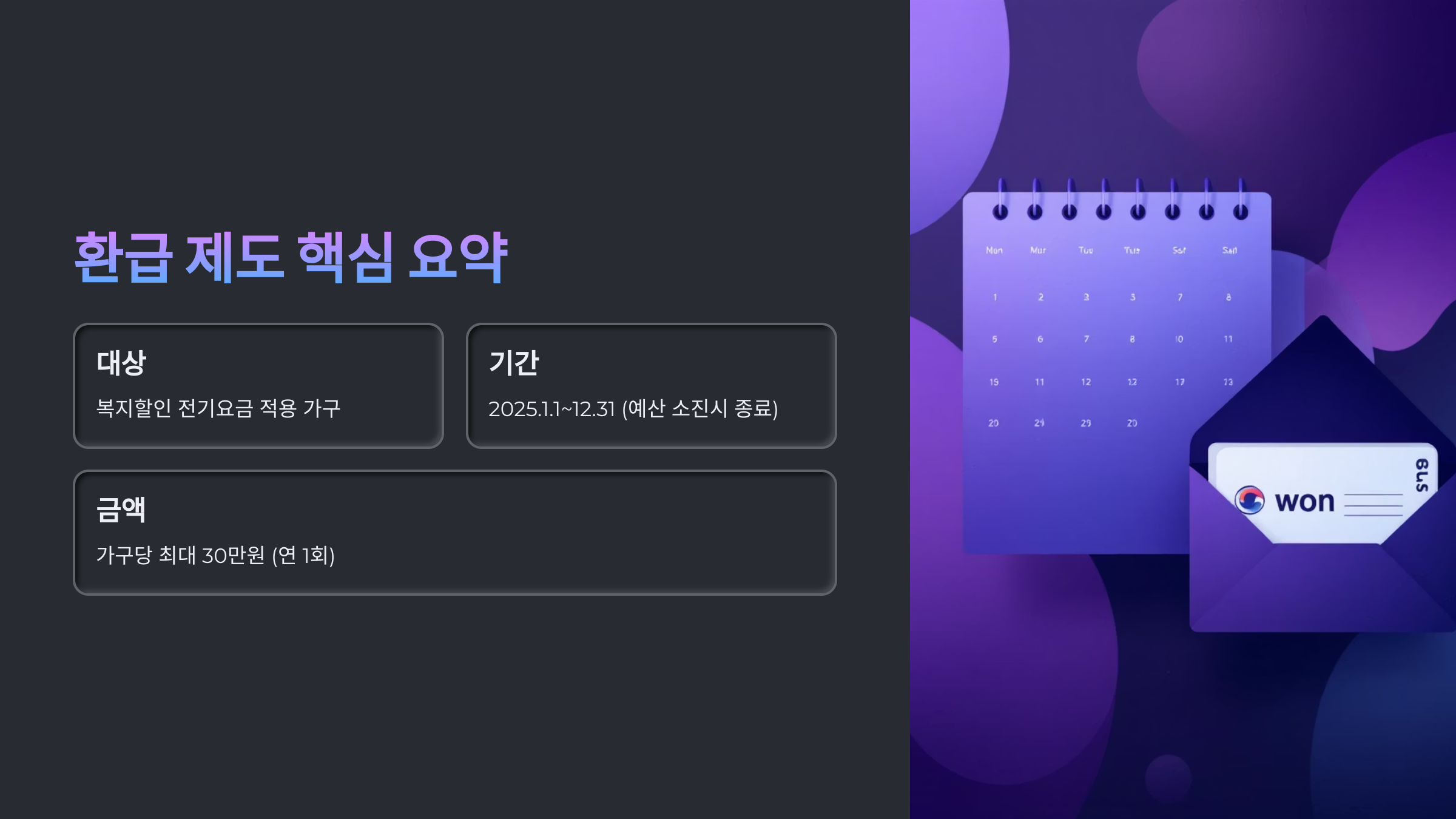 - 대상자 조건: 복지할인 전기요금 적용 가구