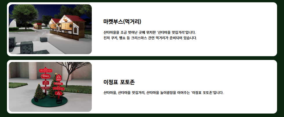 광화문 크리스마스 마켓은 각기 다른 테마로 꾸며진 3개의 구역으로 나뉘어져 있어 다양한 재미를 제공합니다.