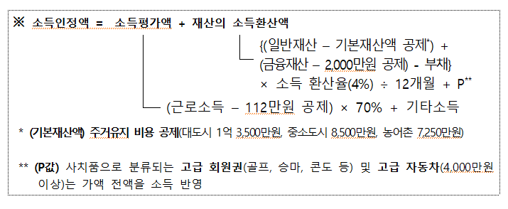 이 계산 방식은 수급 대상을 합리적으로 선정하기 위해 매년 조정됩니다.