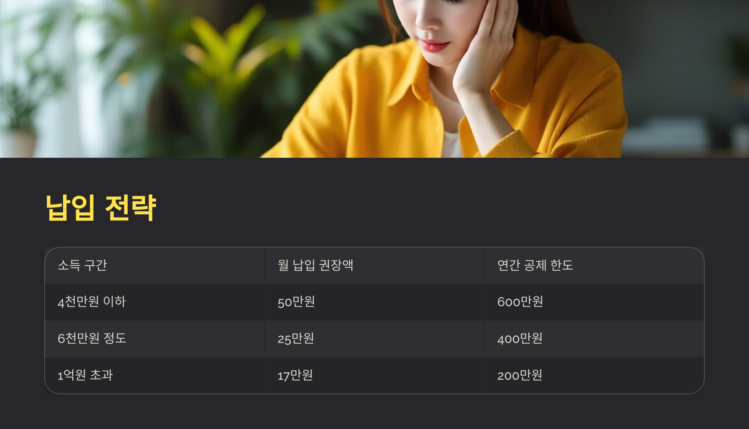 자영업자는 특히 현금흐름이 일정하지 않기 때문에 무리해서 납입금액을 높이면 오히려 중도 해약 가능성이 커져요. 해약 시 불이익이 크기 때문에 현실적인 납입 계획이 중요해요. 한도에 딱 맞춰 넣되, 여유 자금 선에서 납입하는 게 가장 좋아요.