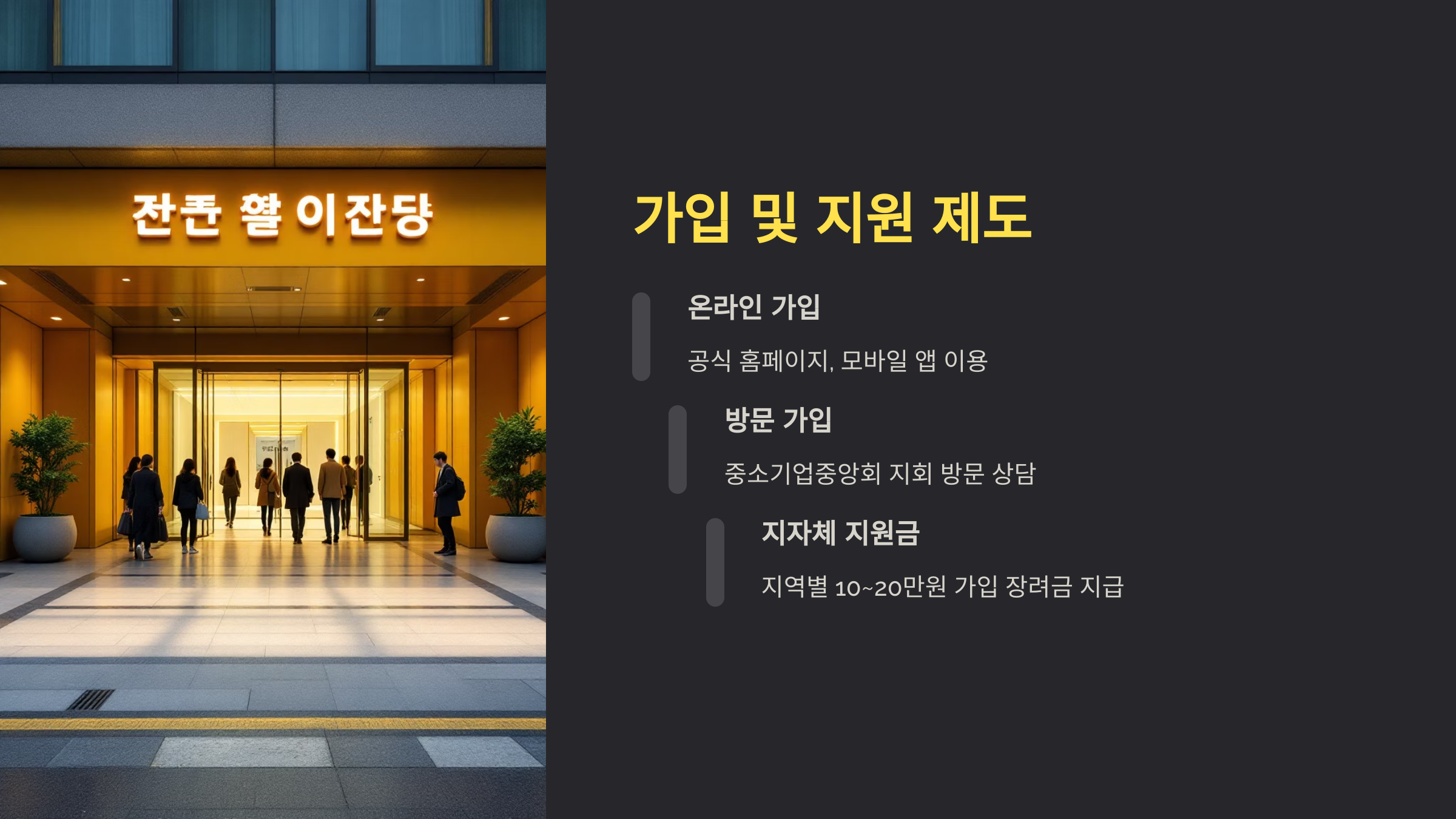 만약 온라인이 어렵다면, 가까운 중소기업중앙회 지회를 직접 방문해서 대면 상담 후 가입하는 것도 가능해요. 특히 처음 가입할 때 상담받고 싶은 분들에게는 방문 신청이 더 나을 수도 있어요. 신청서 우편 제출도 가능한 방식이에요.
