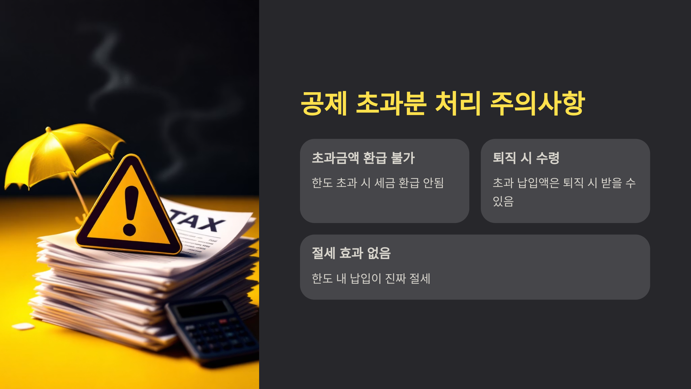 초과 납입액은 퇴직 시 받을 수 있지만 절세 효과는 없어요.