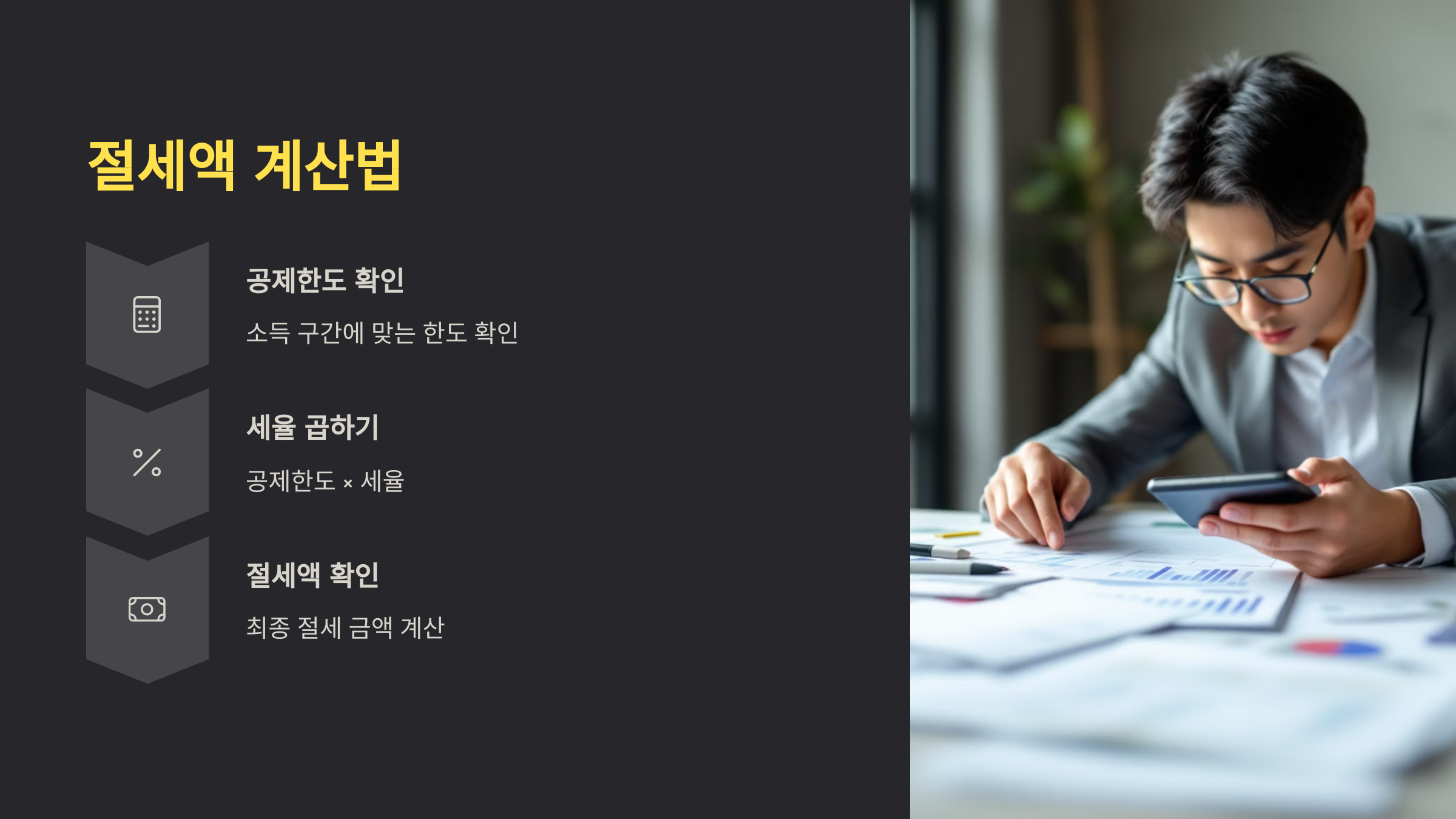 - ✔ 절세 효과 = 공제한도 × 세율로 계산