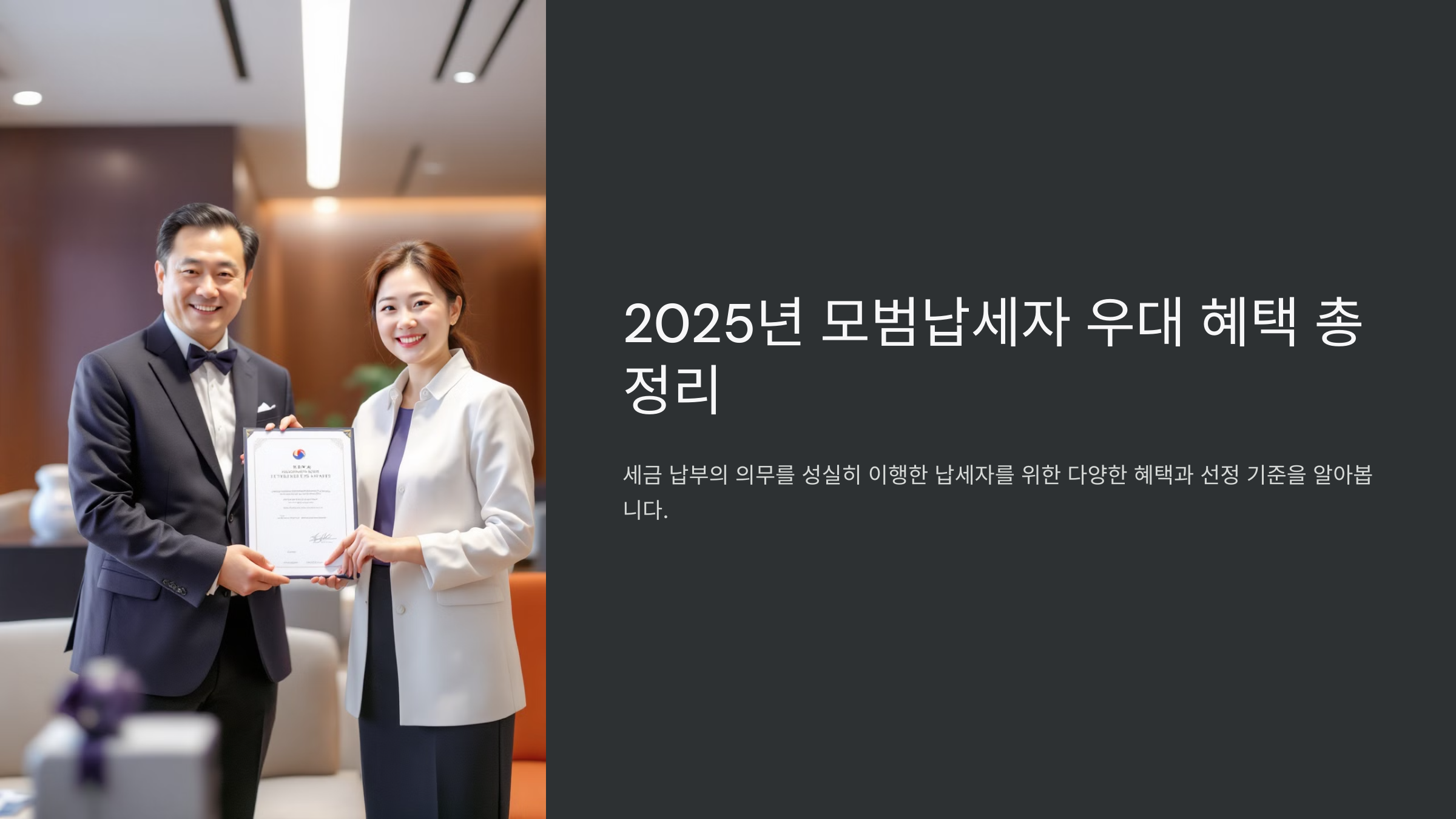 2025년 모범납세자로 선정되면 세금 감면, 대출 금리 인하, 신용점수 상승 등 다양한 혜택을 받을 수 있어요! 🏆