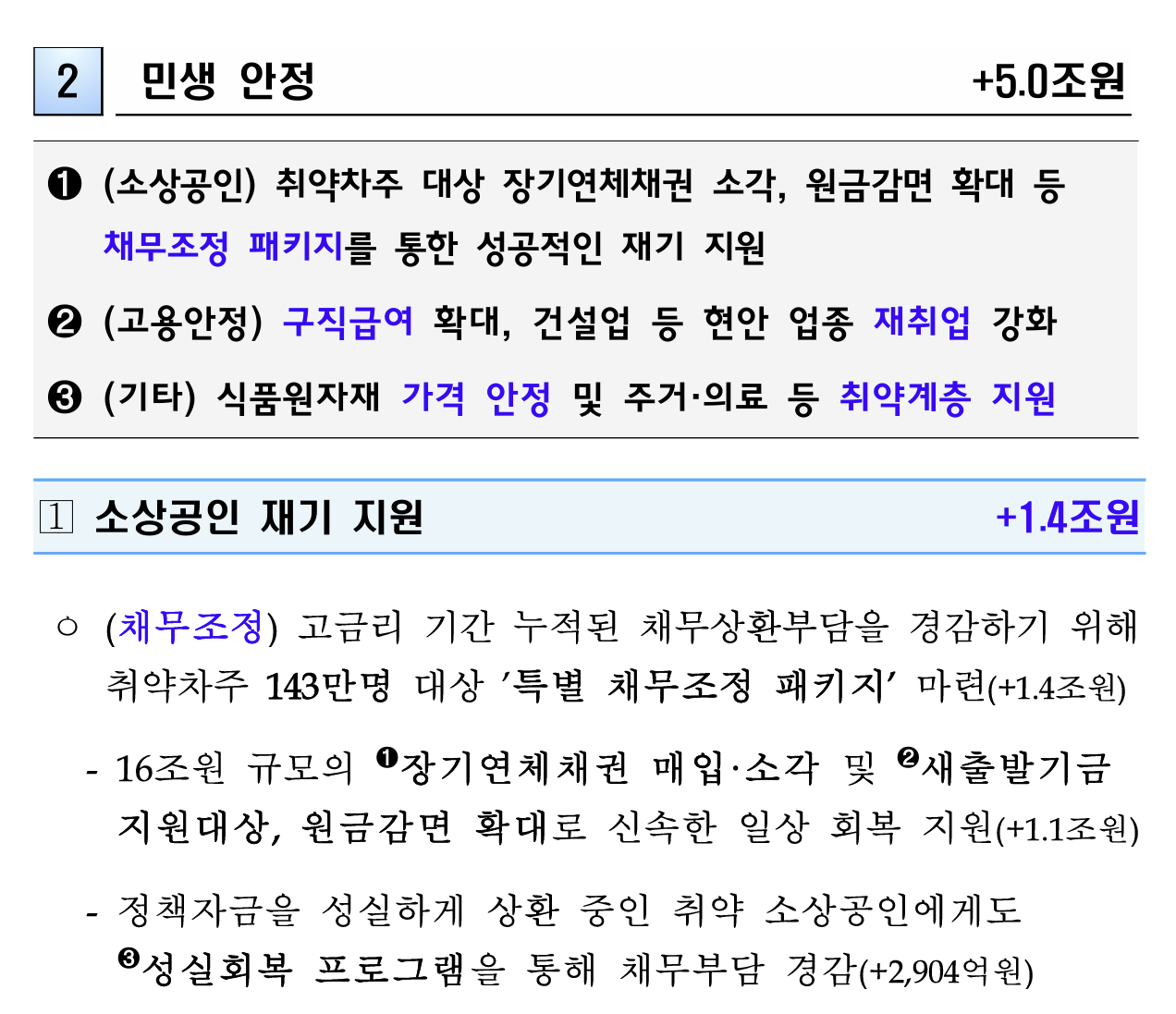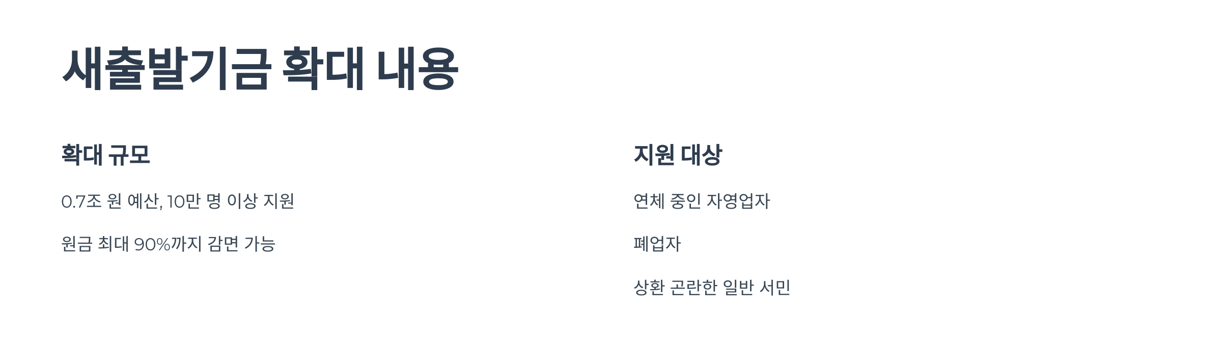 | 새출발기금 확대 | 0.7조원 | 10만 명 |