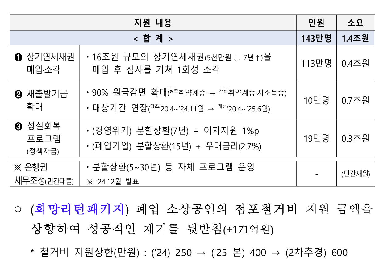 | 장기연체채권 소각 | 0.4조원 | 113만 명 |