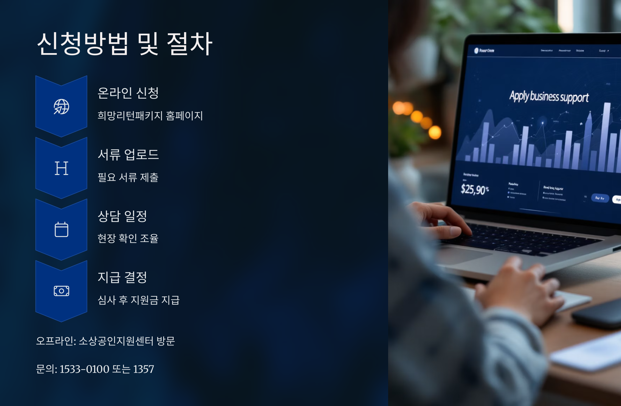 📌 셋째, 희망리턴패키지 제외 업종(유흥·도박 등)이 아니어야 하고, 과거 동일 혜택을 받은 이력이 있으면 중복 수령이 불가능해요.