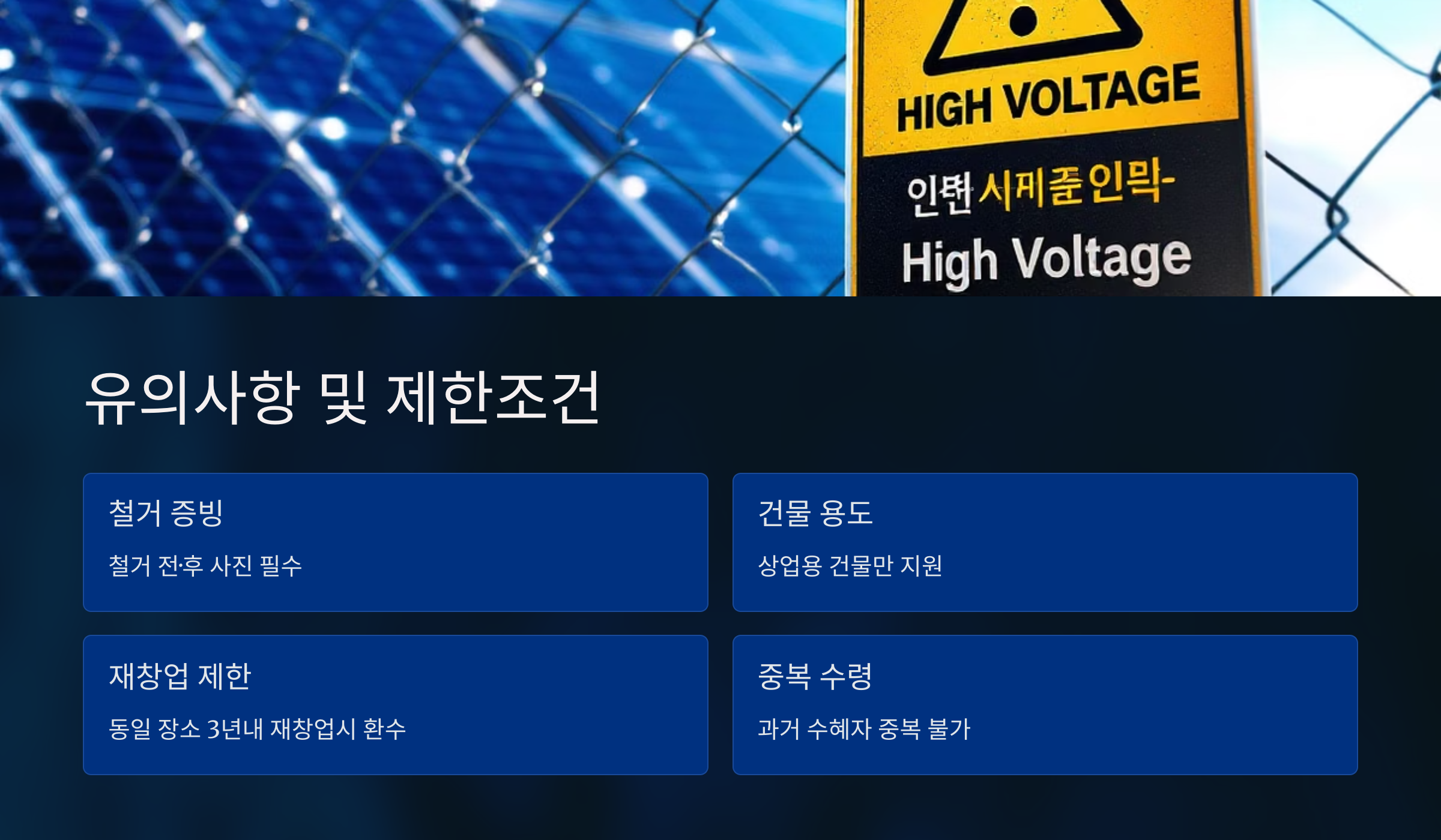 3️⃣ 동일 장소에서 3년 이내 재창업하면 철거비 환수 대상이 될 수 있어요.