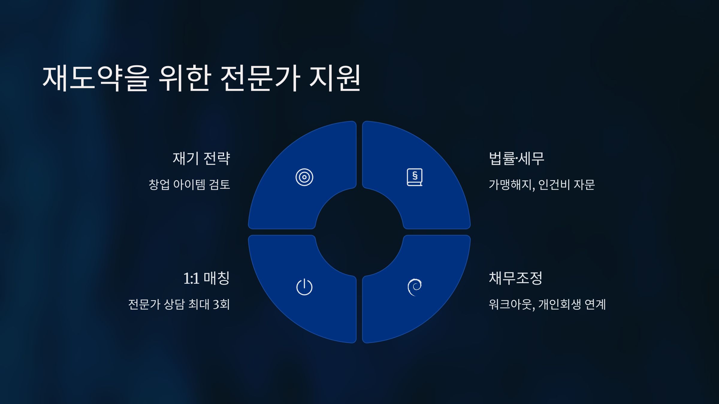 | 사업정리 컨설팅 | 세무·법률·창업 전략 | 분야별 최대 3회 |