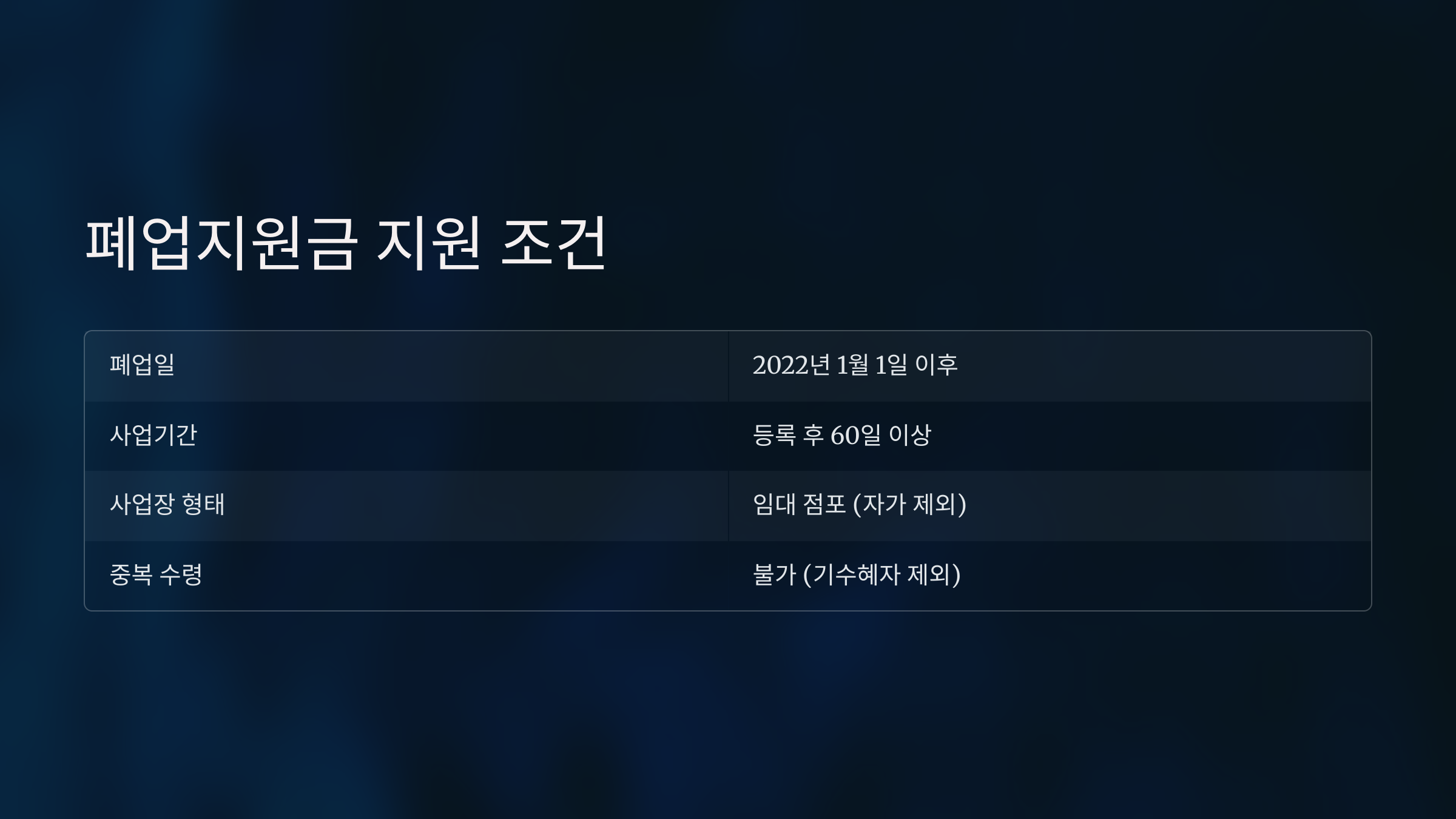 폐업지원금은 요건만 충족하면 누구나 받을 수 있지만, 몇 가지 유의사항도 반드시 알아둬야 해요.