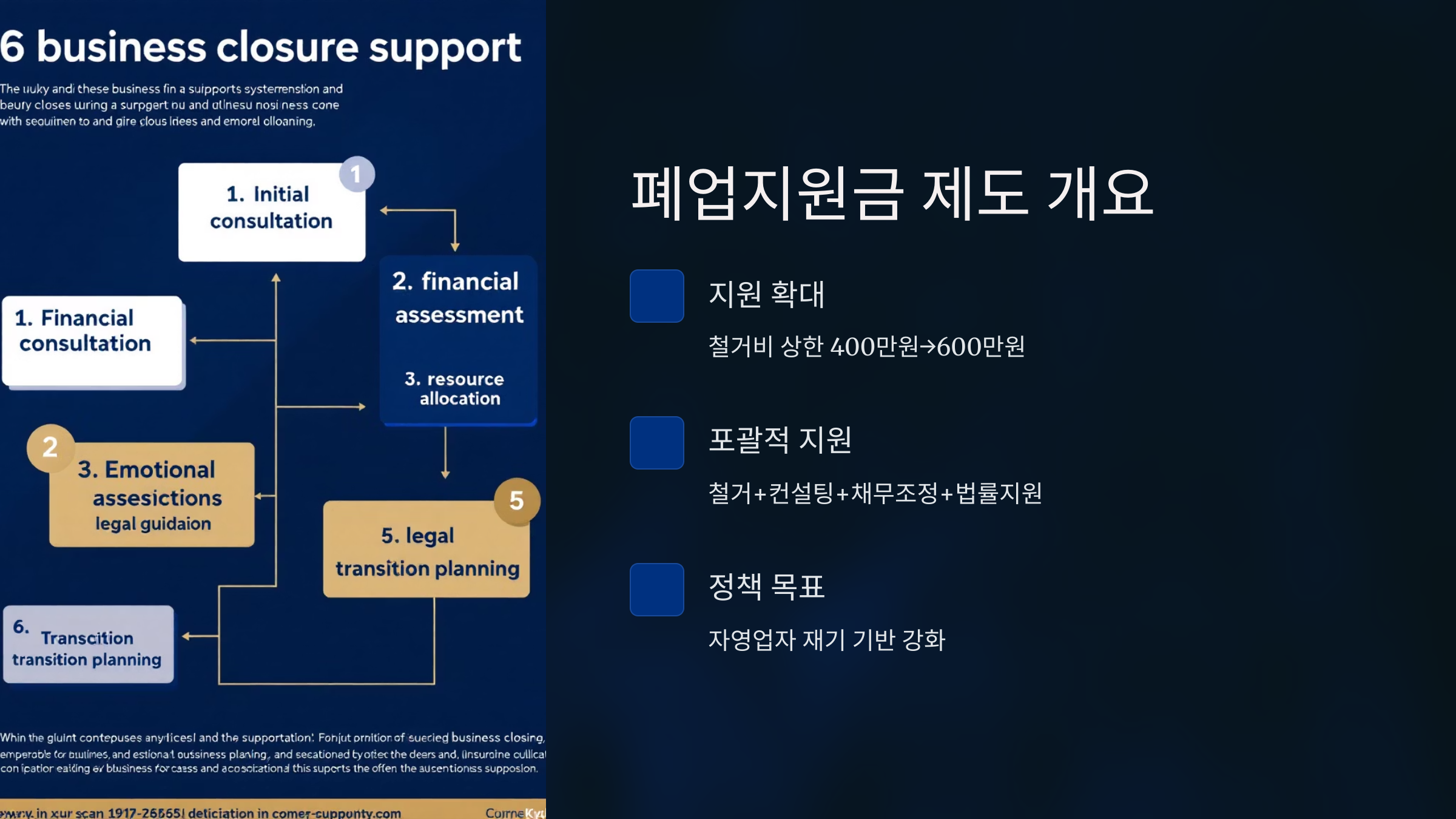 2025년에는 폐업 점포 철거비 상한이 기존 400만원에서 600만원으로 확대되며, 폐업 이후 새로운 시작을 위한 실질적 동력이 되는 제도로 진화했답니다.