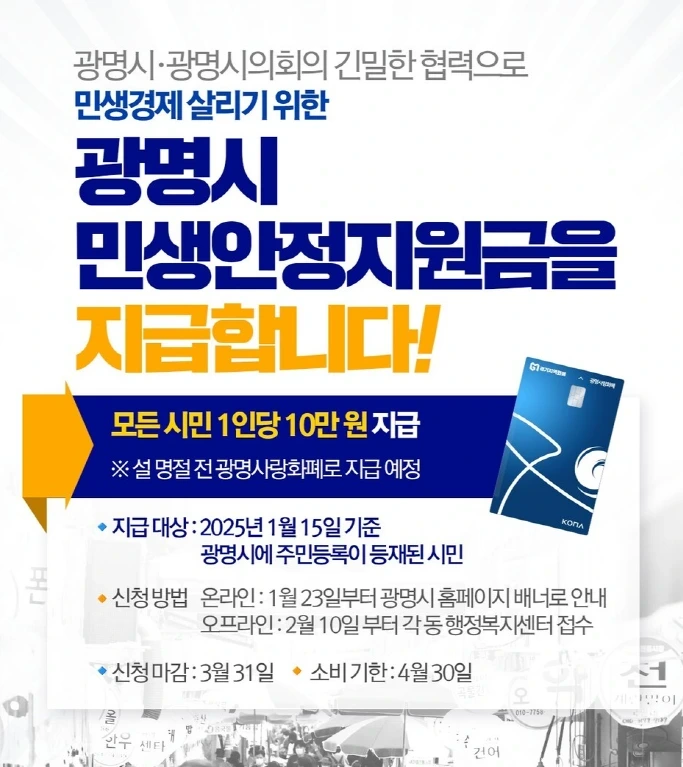 📋 목차민생안정지원금 신청자격민생안정지원금 신청 방법대리 신청 안내환수 조치 및 환수 사유문의처 및 접수 센터행정복지센터 안내민생안정지원금 신청자격지원금 대상은 광명시에 주민