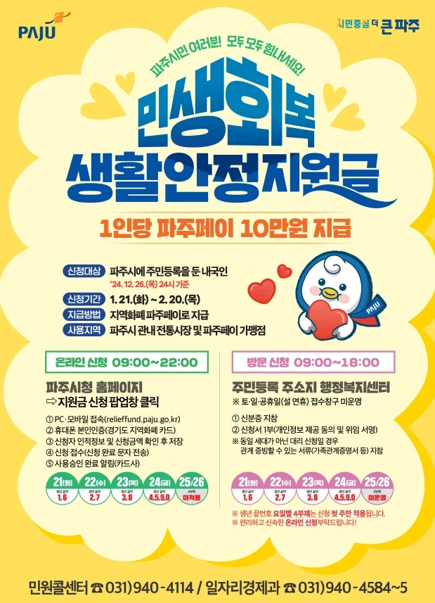 - 지급 방식: 지역화폐인 파주페이 카드 충전