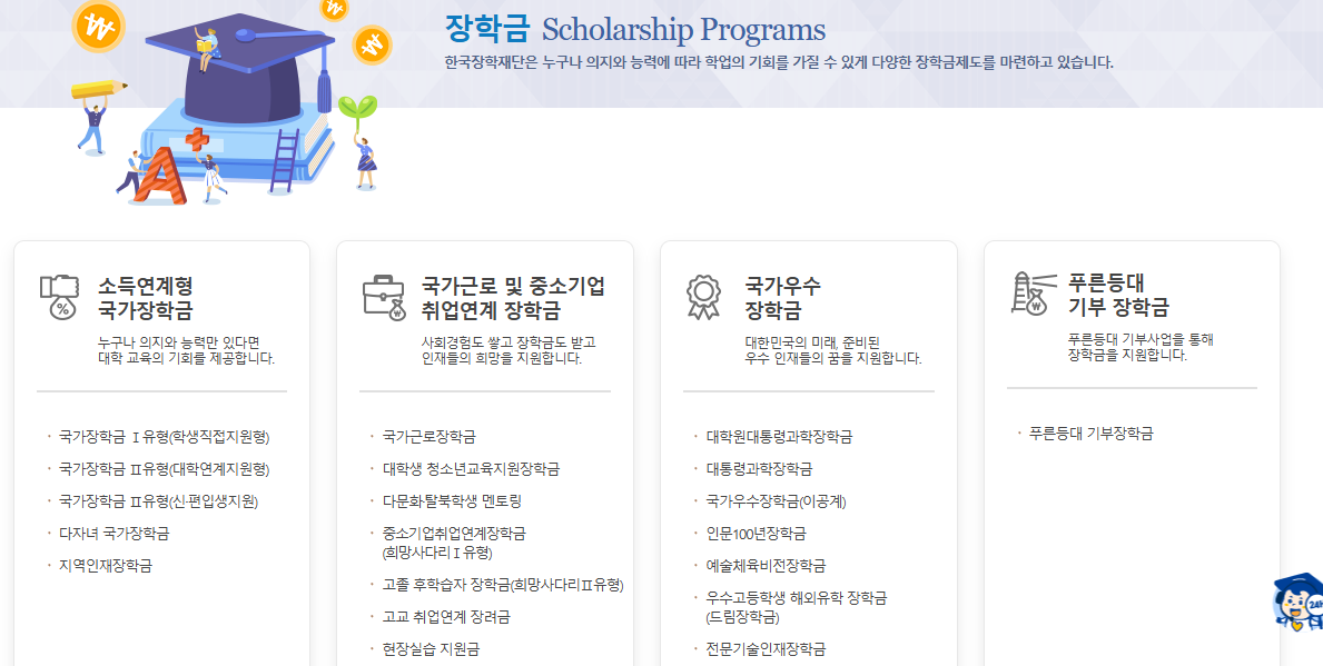 - 기초생활수급자: 등록금 전액 + 생활비 지원.