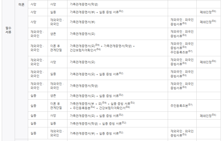 - 가족관계증명서 (필요 시 상세 발급)