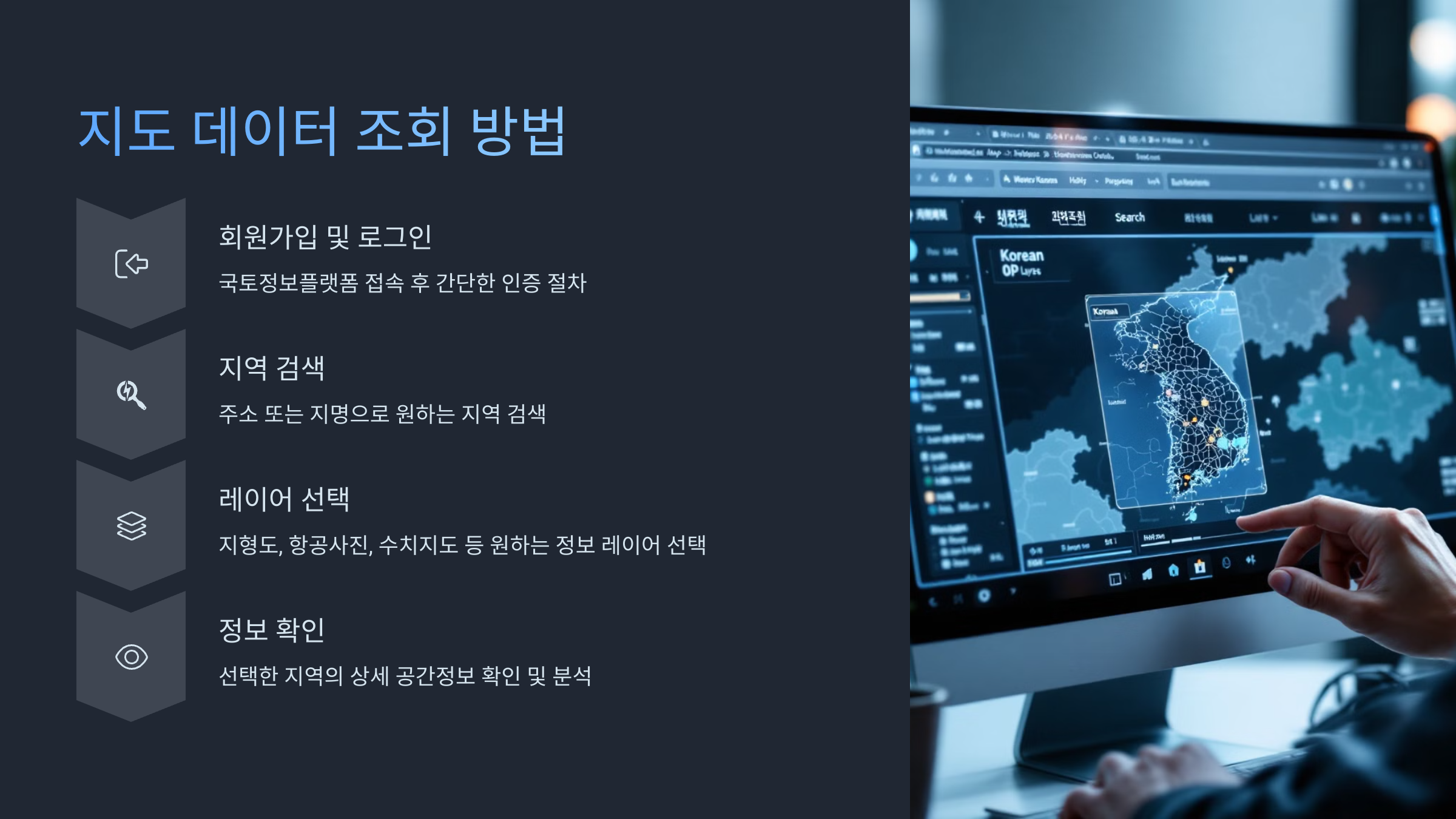 정부 부처는 물론이고 지자체, 기업, 심지어 일반 사용자들도 지도 데이터를 다운받고, 공간 정보를 시각화하거나 분석하는 데 사용할 수 있도록 돕고 있어요.