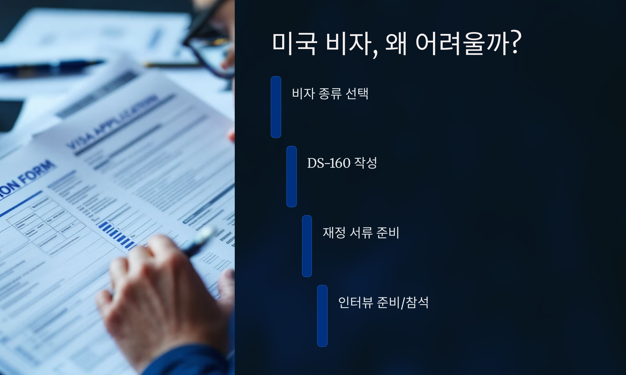 미국 비자를 신청하려면 ‘비자 종류 선택’부터 시작해, DS-160 작성, 인터뷰 준비, 재정 서류 준비, 인터뷰 참석까지 여러 단계를 거쳐야 해요.