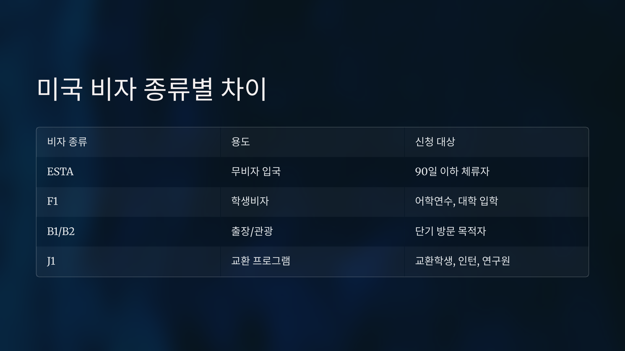 | 🇺🇸 미국 비자 종류 완벽 비교 | 바로가기 |