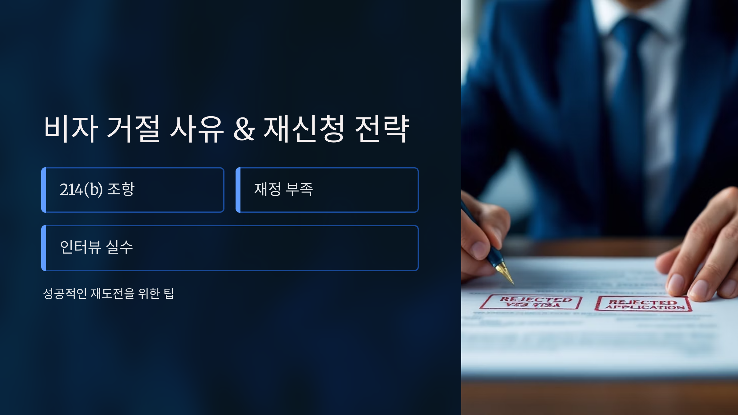 👉 214(b), 재정 부족, 인터뷰 실수 등 주요 이슈별 대응법과 성공적인 재도전을 위한 팁까지 담았어요.